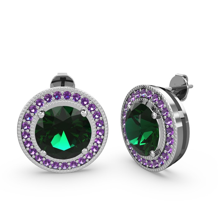 Ametist ve yeşil kuvars 14 ayar beyaz altın küpe