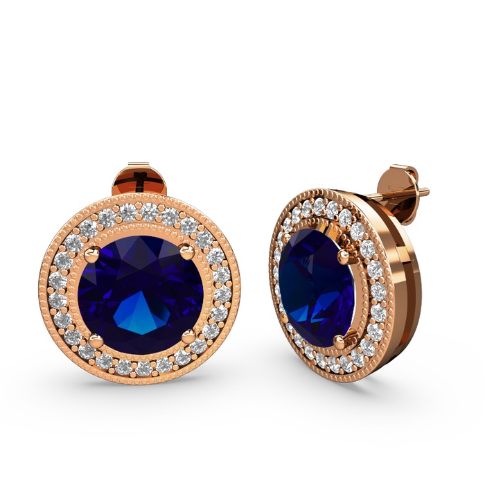 Beyaz zirkon ve lab safir 8 ayar rose altın küpe