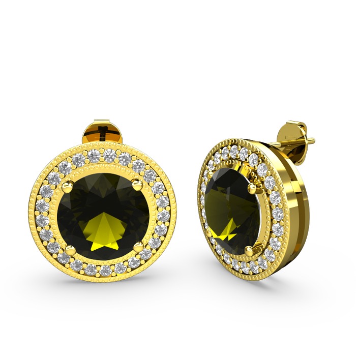 Beyaz zirkon ve peridot 925 ayar altın kaplama gümüş küpe