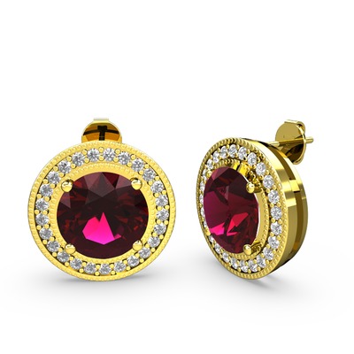 Beyaz zirkon ve rodolit garnet 925 ayar altın kaplama gümüş küpe