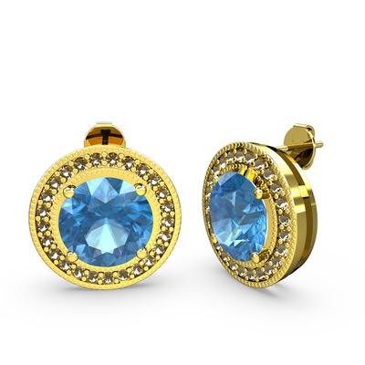 Dumanlı kuvars ve akuamarin 925 ayar altın kaplama gümüş küpe