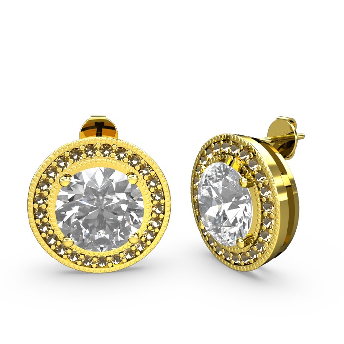 Dumanlı kuvars ve beyaz zirkon 925 ayar altın kaplama gümüş küpe