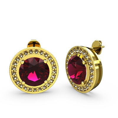 Dumanlı kuvars ve rodolit garnet 8 ayar altın küpe