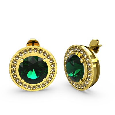 Dumanlı kuvars ve yeşil kuvars 8 ayar altın küpe