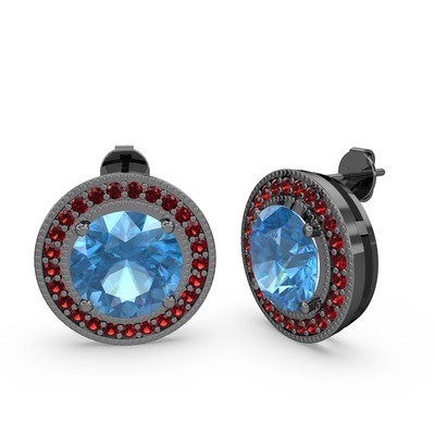 Garnet ve akuamarin 925 ayar siyah rodyum kaplama gümüş küpe