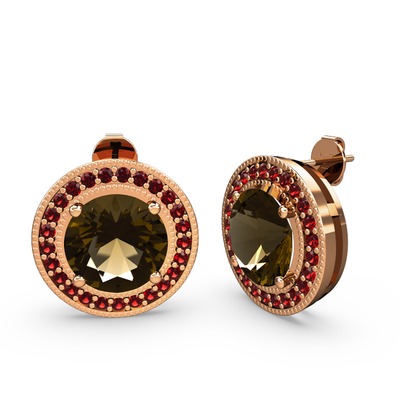 Garnet ve dumanlı kuvars 8 ayar rose altın küpe