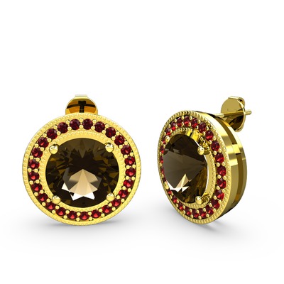 Garnet ve dumanlı kuvars 925 ayar altın kaplama gümüş küpe