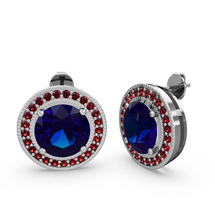 Garnet ve lab safir 8 ayar beyaz altın küpe