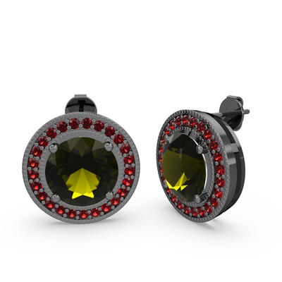 Garnet ve peridot 925 ayar siyah rodyum kaplama gümüş küpe