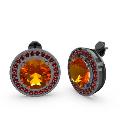 Garnet ve sitrin 925 ayar siyah rodyum kaplama gümüş küpe