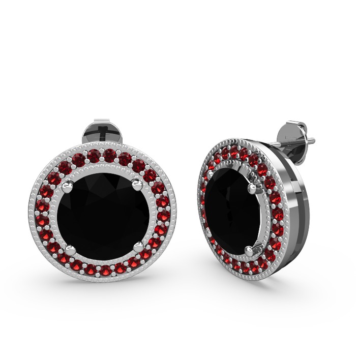Garnet ve siyah zirkon 14 ayar beyaz altın küpe