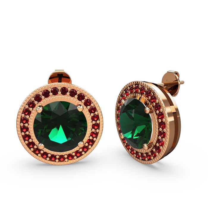 Garnet ve yeşil kuvars 925 ayar rose altın kaplama gümüş küpe