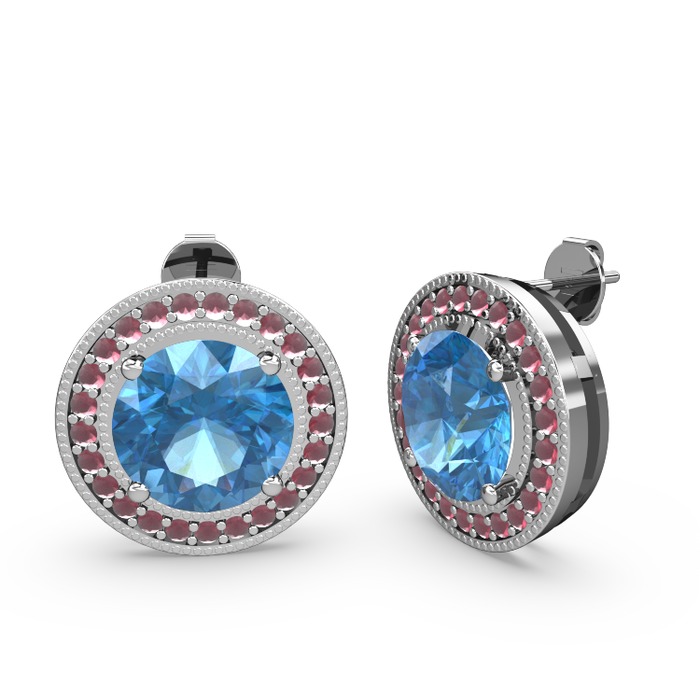 Kök yakut ve akuamarin 14 ayar beyaz altın küpe