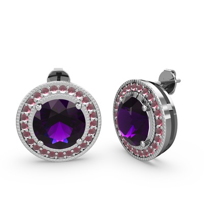 Kök yakut ve ametist 14 ayar beyaz altın küpe