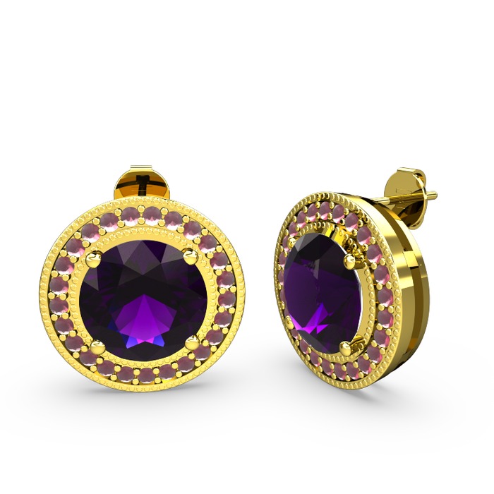 Kök yakut ve ametist 18 ayar altın küpe