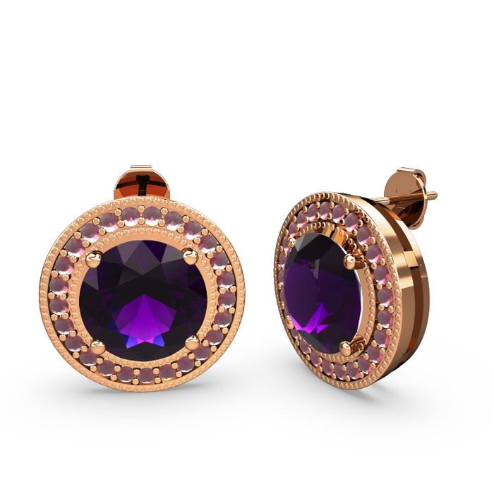 Kök yakut ve ametist 925 ayar rose altın kaplama gümüş küpe
