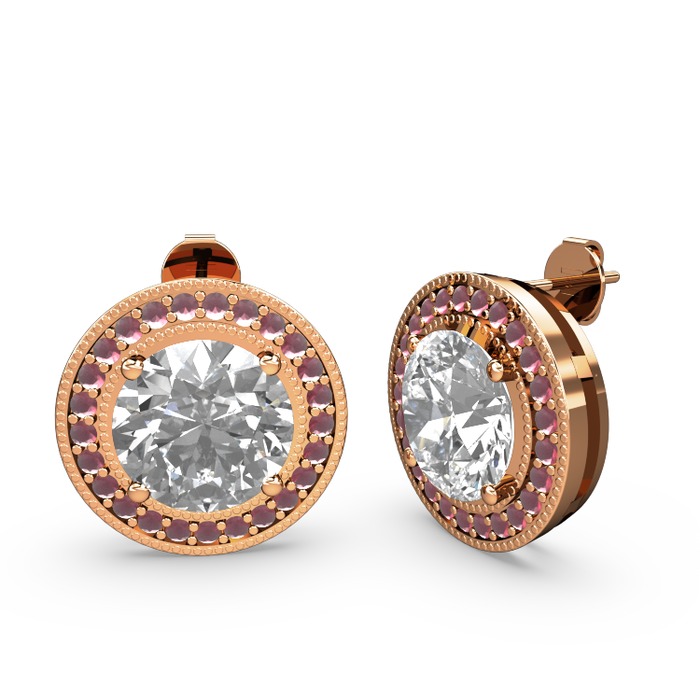 Kök yakut ve beyaz zirkon 18 ayar rose altın küpe