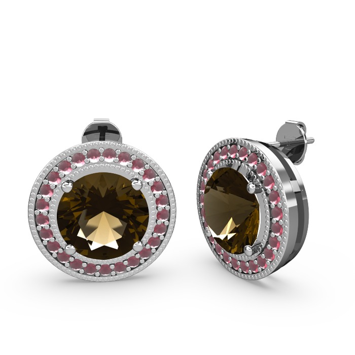 Kök yakut ve dumanlı kuvars 18 ayar beyaz altın küpe