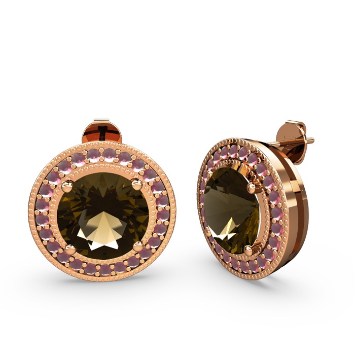 Kök yakut ve dumanlı kuvars 18 ayar rose altın küpe