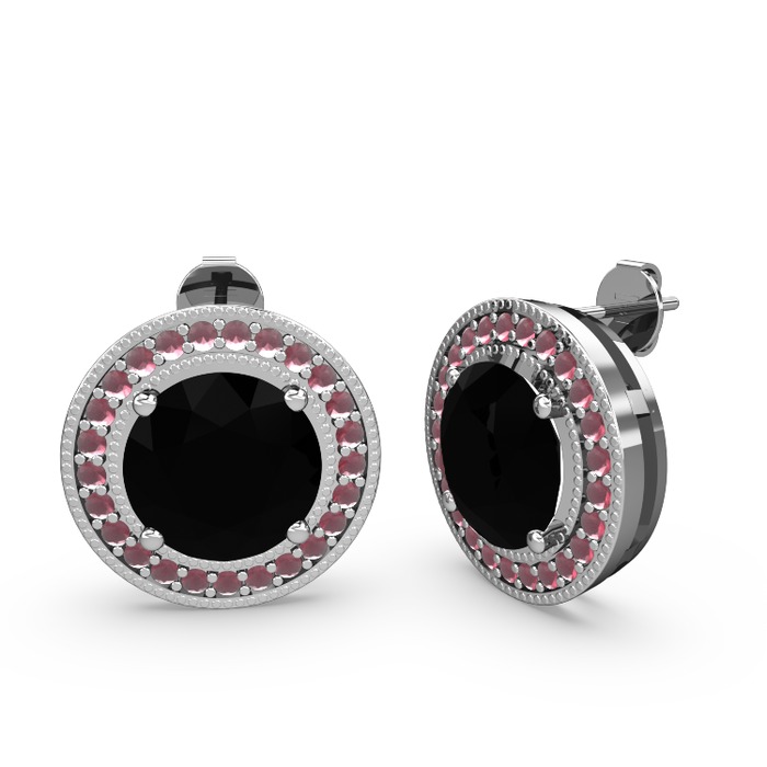 Kök yakut ve siyah zirkon 18 ayar beyaz altın küpe