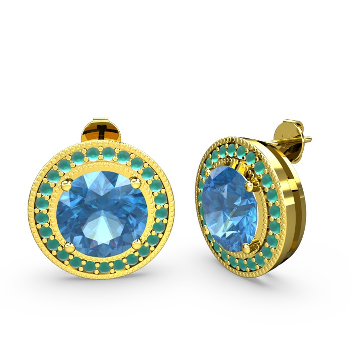 Kök zümrüt ve akuamarin 14 ayar altın küpe