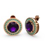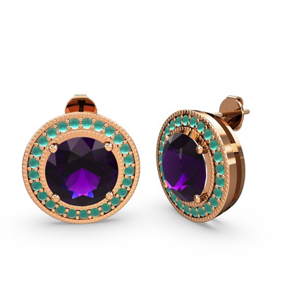 Kök zümrüt ve ametist 8 ayar rose altın küpe