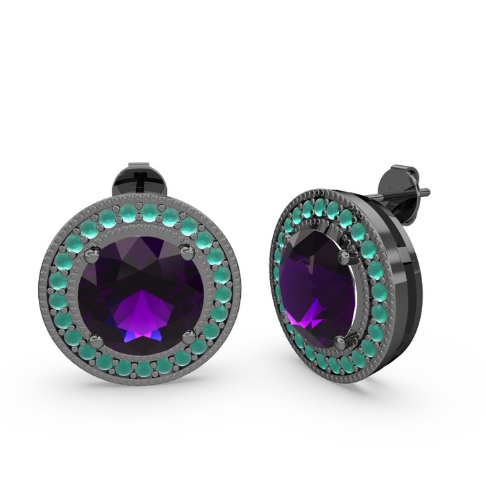 Kök zümrüt ve ametist 925 ayar siyah rodyum kaplama gümüş küpe