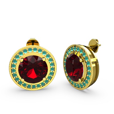 Kök zümrüt ve garnet 8 ayar altın küpe