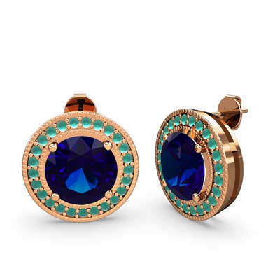 Kök zümrüt ve lab safir 18 ayar rose altın küpe