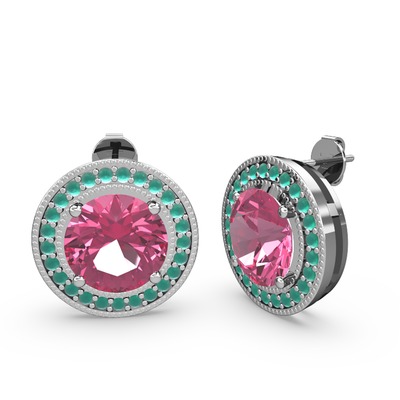 Kök zümrüt ve pembe kuvars 925 ayar gümüş küpe