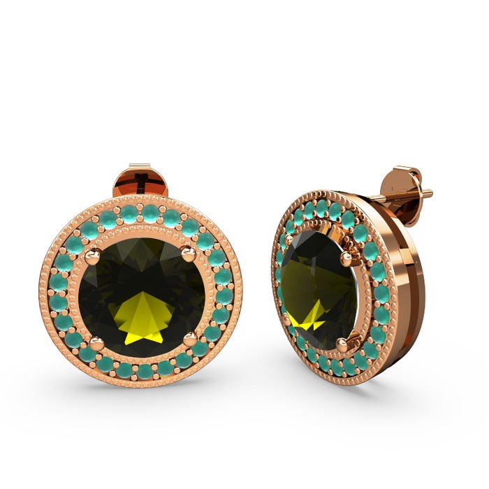 Kök zümrüt ve peridot 14 ayar rose altın küpe