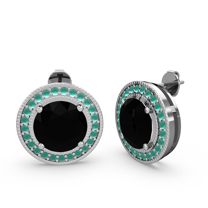Kök zümrüt ve siyah zirkon 14 ayar beyaz altın küpe
