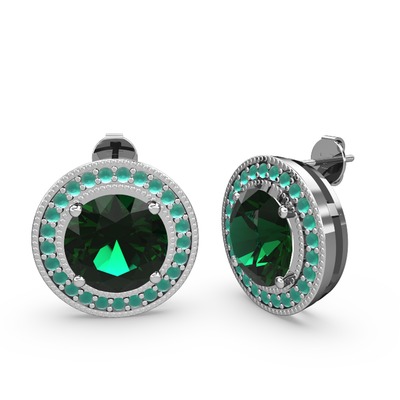 Kök zümrüt ve yeşil kuvars 14 ayar beyaz altın küpe