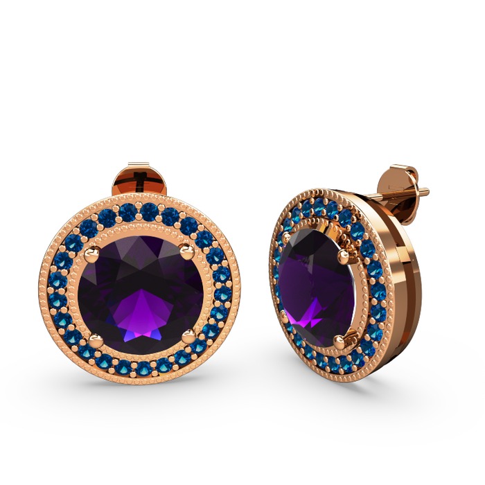 Lab safir ve ametist 18 ayar rose altın küpe