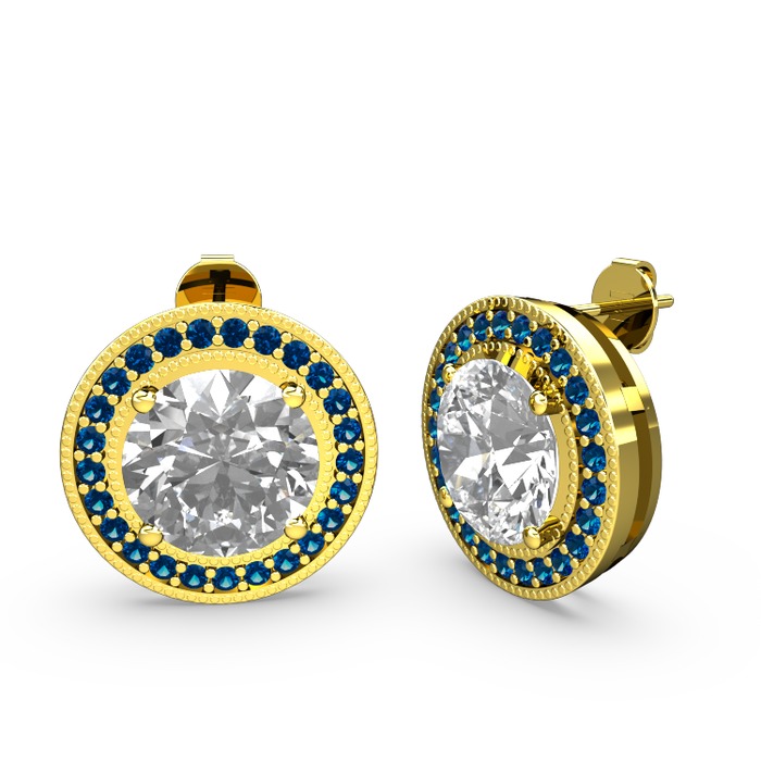 Lab safir ve beyaz zirkon 18 ayar altın küpe