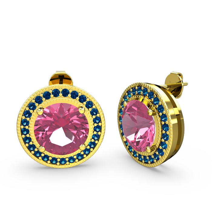 Lab safir ve pembe kuvars 8 ayar altın küpe