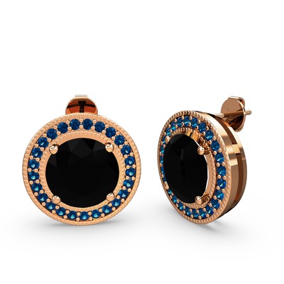 Lab safir ve siyah zirkon 18 ayar rose altın küpe