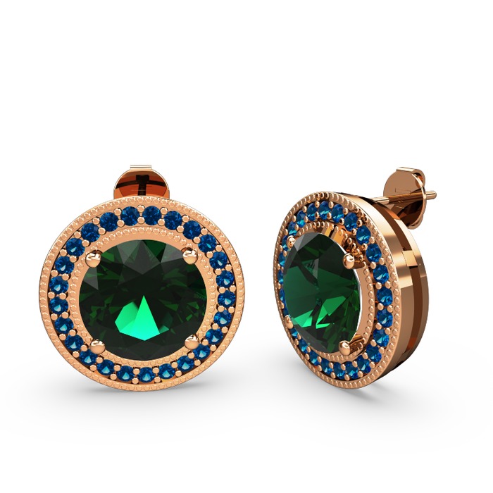 Lab safir ve yeşil kuvars 925 ayar rose altın kaplama gümüş küpe