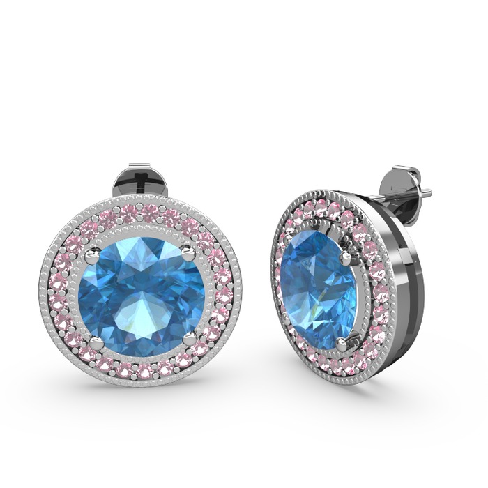 Pembe kuvars ve akuamarin 925 ayar gümüş küpe