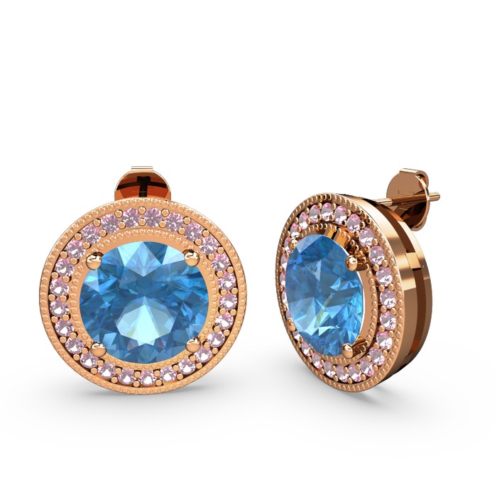 Pembe kuvars ve akuamarin 925 ayar rose altın kaplama gümüş küpe