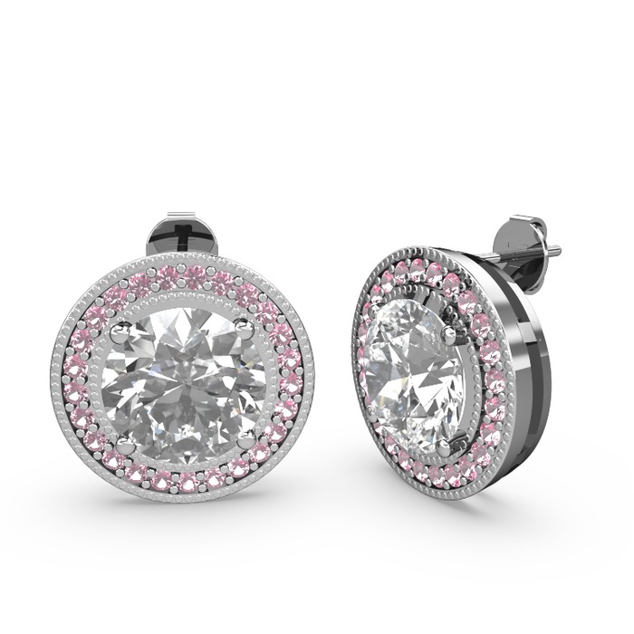 Pembe kuvars ve beyaz zirkon 14 ayar beyaz altın küpe