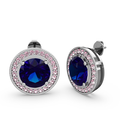 Pembe kuvars ve lab safir 925 ayar gümüş küpe