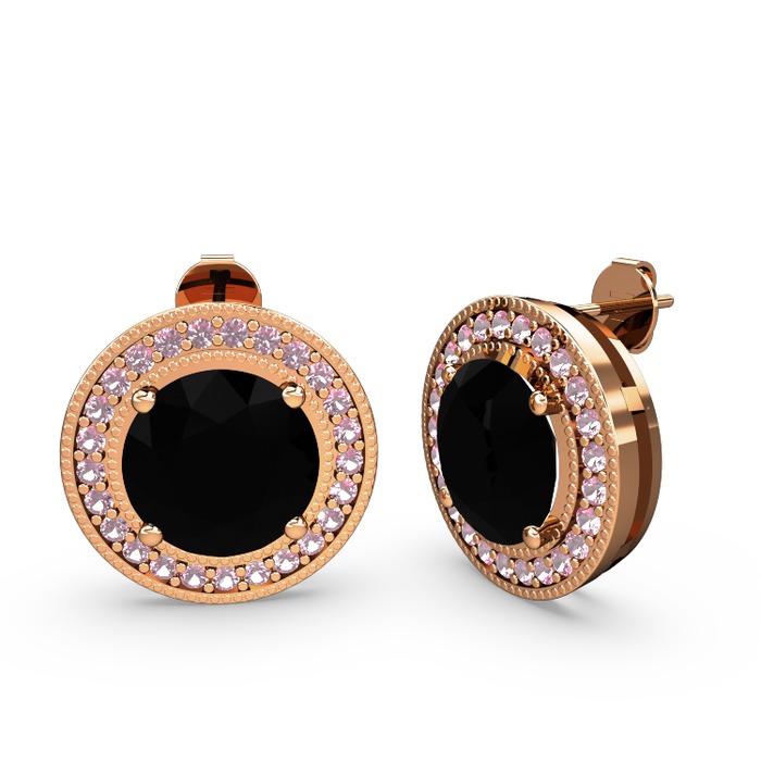 Pembe kuvars ve siyah zirkon 8 ayar rose altın küpe