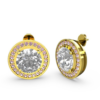Pembe kuvars ve swarovski 14 ayar altın küpe