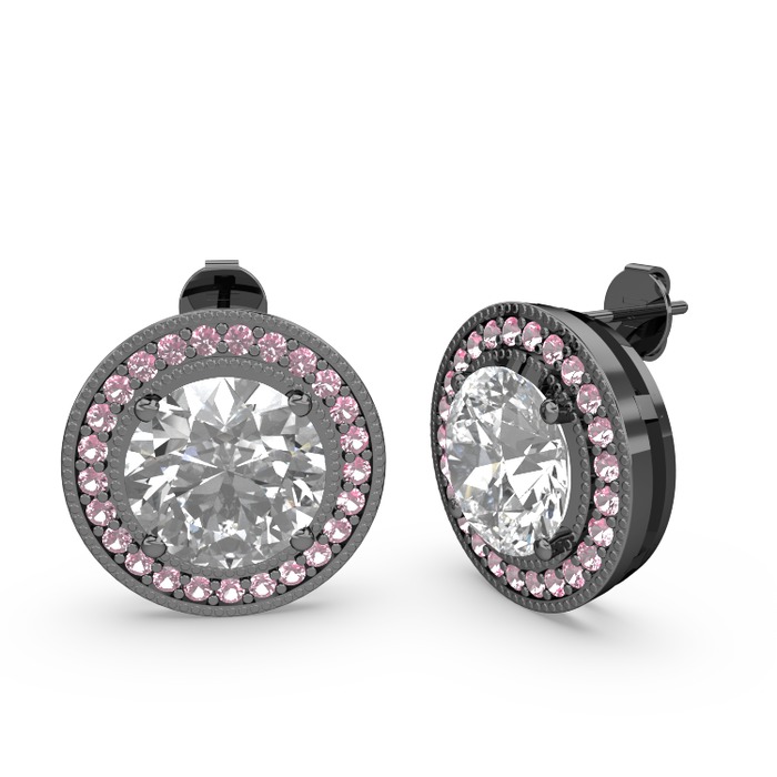 Pembe kuvars ve swarovski 925 ayar siyah rodyum kaplama gümüş küpe