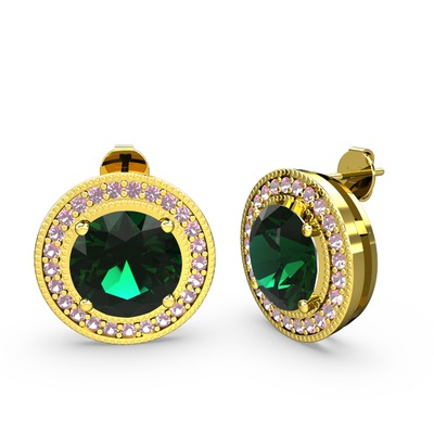 Pembe kuvars ve yeşil kuvars 925 ayar altın kaplama gümüş küpe