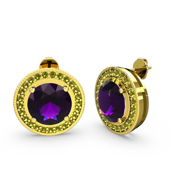 Peridot ve ametist 18 ayar altın küpe