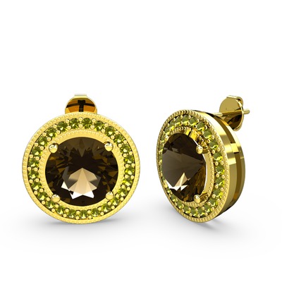 Peridot ve dumanlı kuvars 925 ayar altın kaplama gümüş küpe