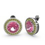 Peridot ve pembe kuvars 18 ayar beyaz altın küpe