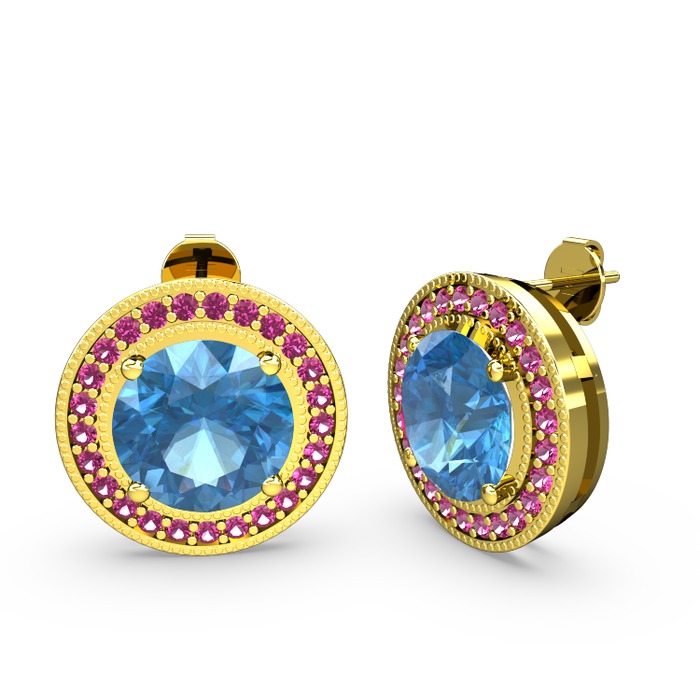 Rodolit garnet ve akuamarin 925 ayar altın kaplama gümüş küpe